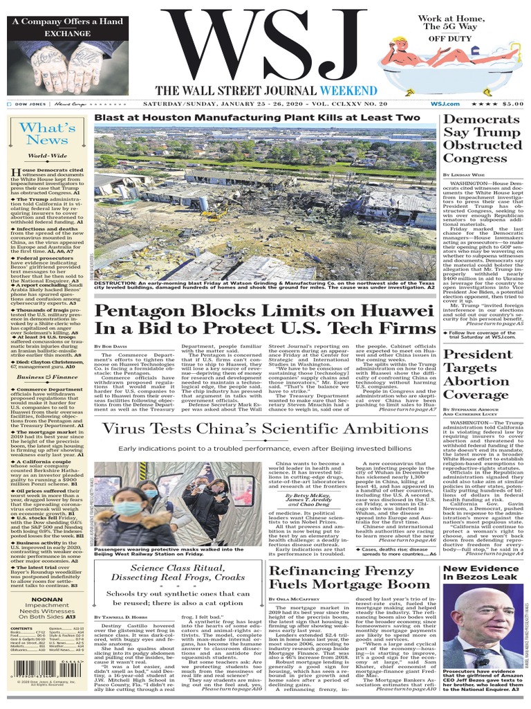 The Wall Street Journal 25 01 2020 26 01 2020 3 Pdf Donald Trump American Government